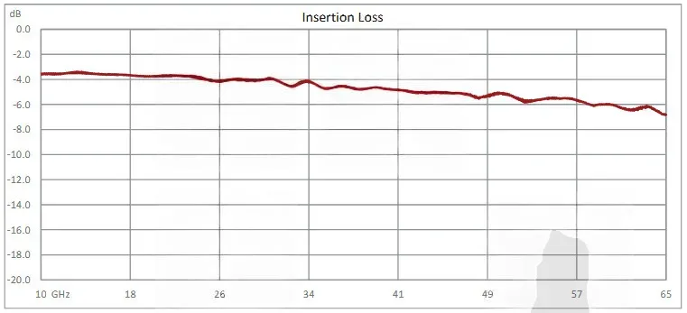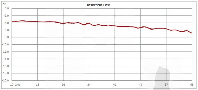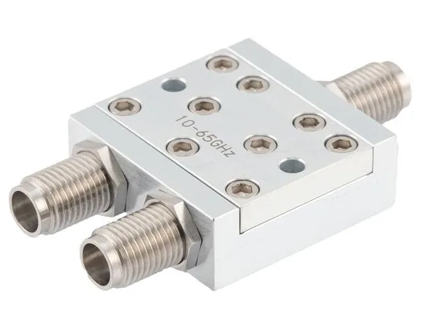 This high-frequency 2-way Wilkinson power divider is designed for broadband applications from 10 GHz to 65 GHz. It supports up to 10 Watts of continuous wave (CW) input power and offers robust RF performance with a maximum insertion loss of 4.5 dB and a minimum isolation of 15 dB.