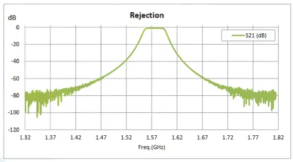• 50 dB rejection at 1.475 GHz and 1.675 GHz (about 90
