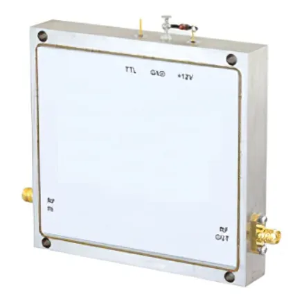 The amplifier is powered by a single positive DC supply and is designed for unconditional stability. It functions reliably within a temperature range of -30°C to +70°C. Additionally, the unit is hermetically sealed, ensuring robust protection in demanding operating environments.